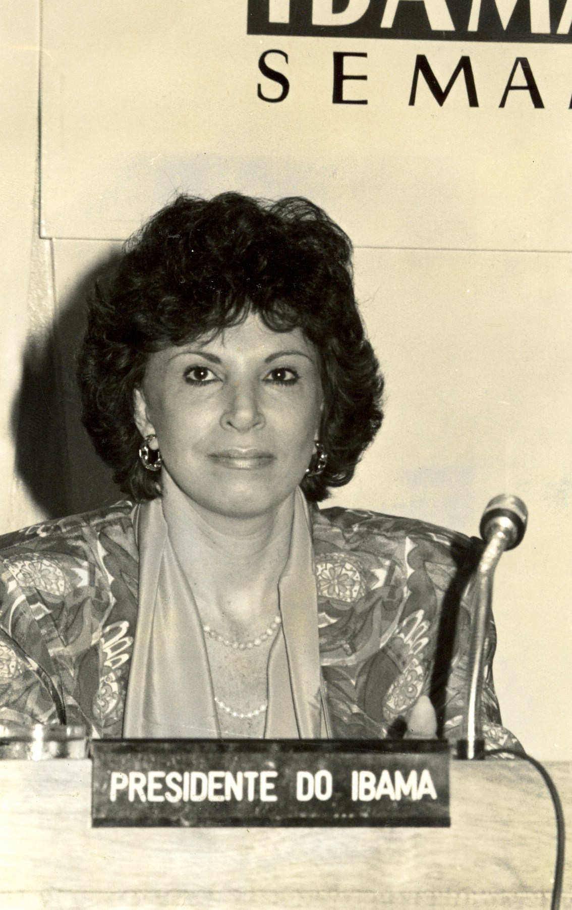 Presidente do Ibama, Maria Tereza de Jorge Pádua, na reunião extraordinária do CONAMA, em 29 de abril de 1992.